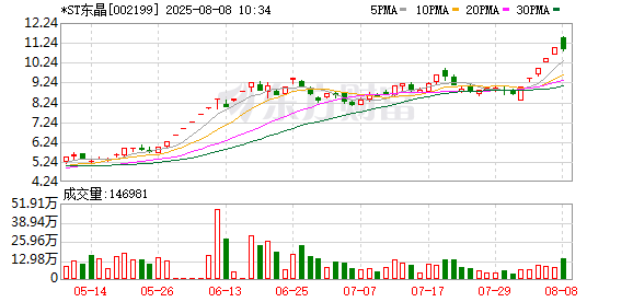 *ST东晶盘中涨停,已连收6个涨停板,截至9:32,该股报11.52元,换手率1.63%,成交量397.81万股,成交金额4577.06万元,涨停板封单金额为1577.32万元。连续涨停期间,该股累计上涨33.95%,累计换手率为18.72%。最新A股总市值达28.04亿元。