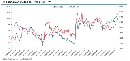 我们构建并持续跟踪的投资者情绪指数近期快速上升,并突破90进入亢奋区(今年2月26、27日情绪指数也曾短暂进入亢奋区)。各量价类型情绪分项指标均有不同程度上行。其中,融资买入占市场成交比例这一指标反映杠杆资金情绪,是我们较为关注的前瞻指标,本周三突破10%,这预示着未来A股中期行情有着较好的表现(历史上该指标升至10%也是中长期行情启动的关键信号,比如2014年4月,2016年7月,2017年7月,2019年3月,去年9月底),同时6月23日以来,融资余额不断上涨至1.9万亿,反映出市场情绪的升温。自4月8日关税战冲击后,沪深融资余额持续位于1.8万亿左右,于近期不断攀升,现已突破1.9万亿。。另一个强势股占比指标:60周均线上方个股占比本周升至87%,显示在增量资金涌入背景下市场整体水平非常强势(可类比2014年8月13日)。