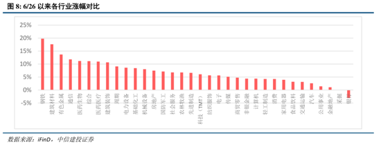 供给侧响应积极,需求侧关注7月政治局会议力度及内需改善效果。整体观察本轮反内卷政策效果,目前各项政策尚未大规模落地,且集中在供给侧,部分行业已初具成效,期货价格大涨,处于供给向需求发力传导阶段,需求扩张效果则有待进一步验证。近日,国家发展改革委已会同财政部,向地方下达了今年第三批690亿元超长期特别国债支持消费品以旧换新资金(此前1月和4月已分别下达两批共计1620亿元中央资金),继续支持消费需求。未来关注7月政治局会议,或有温和定向的增量政策及促消费、稳信心动作,其力度和落地效果与反内卷走势相关较大。进一步看,后续反内卷走向或与内需改善情况相关,建议进一步关注后续PPI等指标走向,把握PPI转正等关键节点。